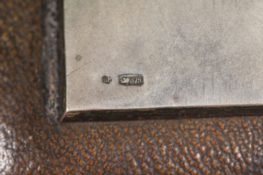 A CONTINENTAL SILVER TOPPED NOTEPAD HOLDER CIRCA 1936, A/F, H 29 cm