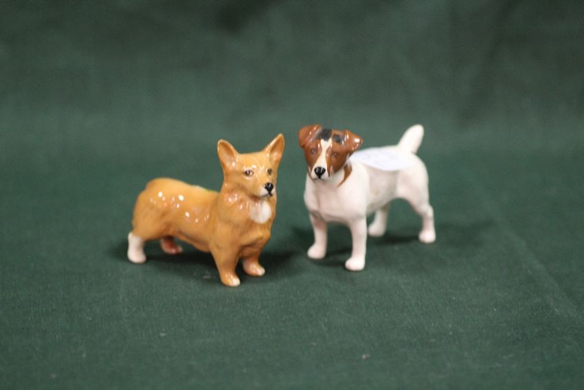 A BESWICK JACK RUSSELL FIGURE, TOGETHER WITH A BESWICK CORGI FIGURE (2)
