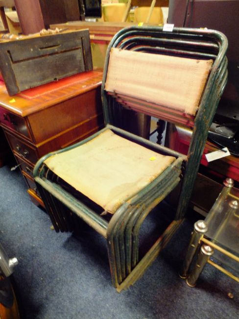 SEVEN VINTAGE METAL STACKING CHAIRS A/F