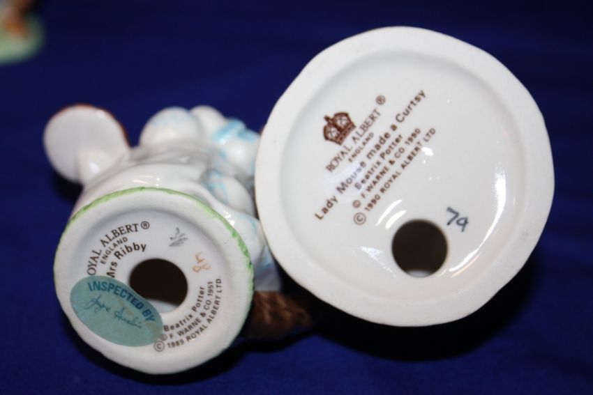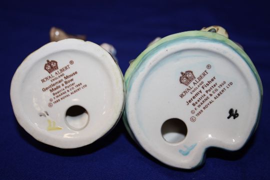 SIX ROYAL ALBERT BEATRIX POTTER FIGURES TO INCLUDE 'LADY MOUSE MADE A COURTESY' 'NO MORE TWIST', 'GENTLEMAN MOUSE MADE A BOW'