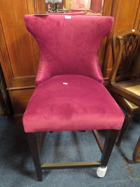 A MODERN PURPLE UPHOLSTERED BAR STOOL