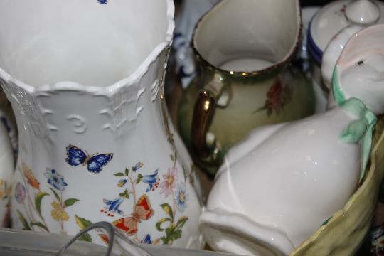 A TRAY OF CERAMICS TO INCLUDE AYNSLEY (TRAY NOT INCLUDED)