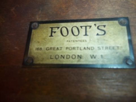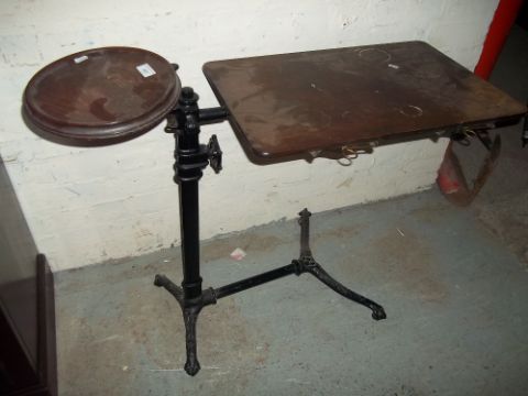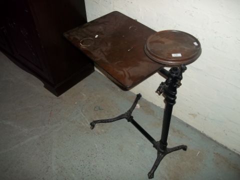 AN OAK ANTIQUE CAST IRON READING STAND, MADE BY FOOTS, LONDON W1