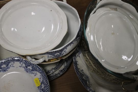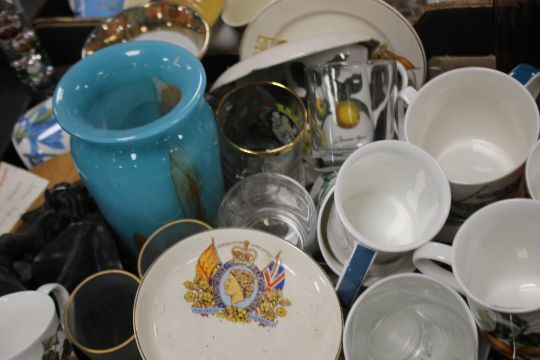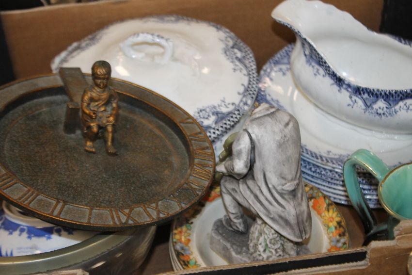 FOUR TRAYS OF CERAMICS ETC. (TRAYS NOT INCLUDED)