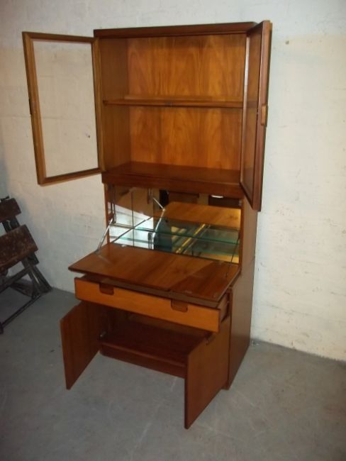 A RETRO TEAK NARROW WALL DISPLAY DRINKS CABINET, W 81 CM