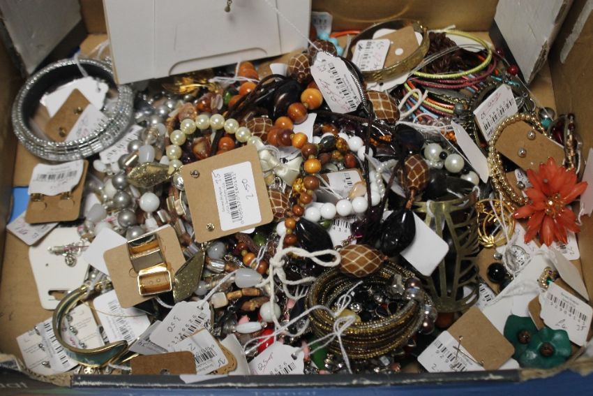 A BOX OF ASSORTED COSTUME JEWELLERY