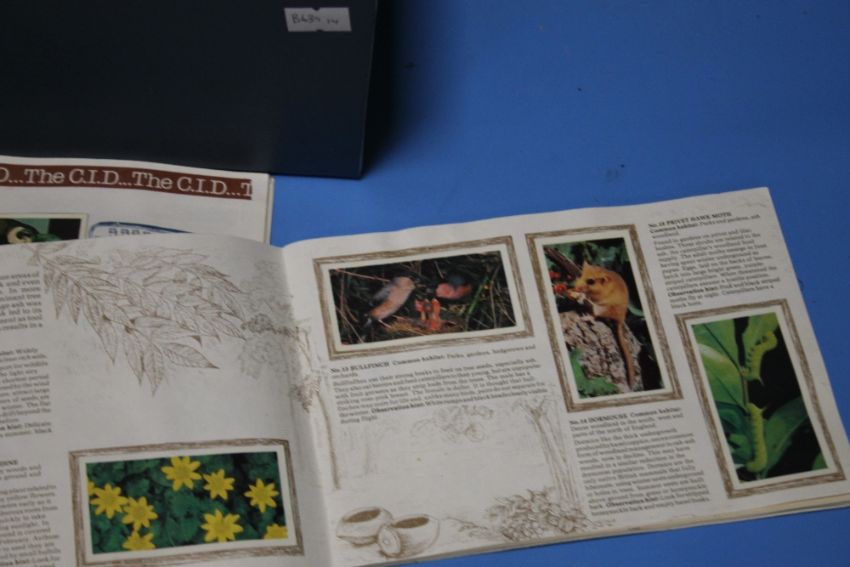 AN ALBUM OF POSTCARDS, along with a tin of loose cards and a selection of tea cards.