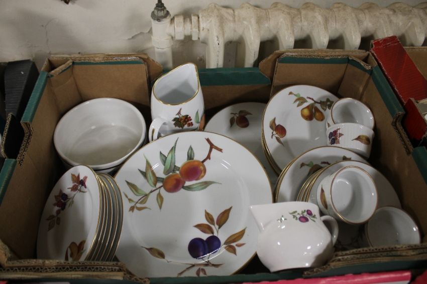 A TRAY OF ROYAL WORCESTER "EVESHAM" TEA & DINNERWARE (TRAY NOT INCLUDED)