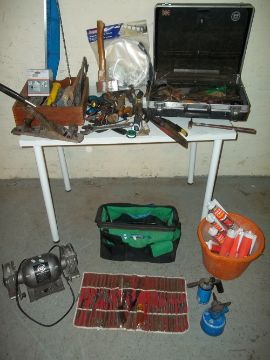 A QUANTITY OF TOOLS TO INCLUDE A LARGE BENCH GRINDER
