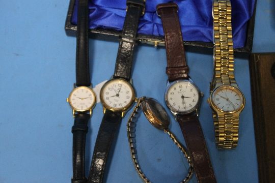 A TRAY OF COLLECTABLES TO INCLUDE WRIST WATCHES, A BOXED PEN ETC.