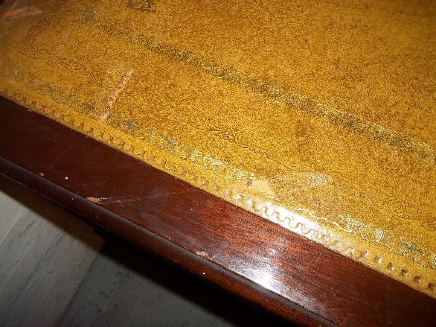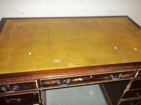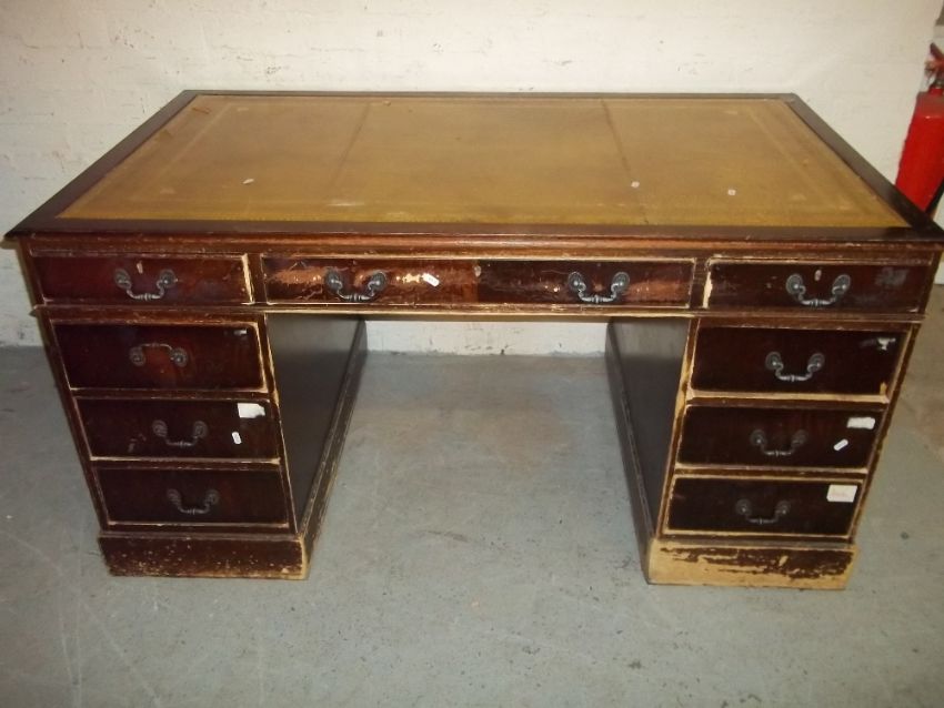 A VINTAGE LARGE LEATHER INLAID TWIN PEDESTAL REPRODUCTION DESK