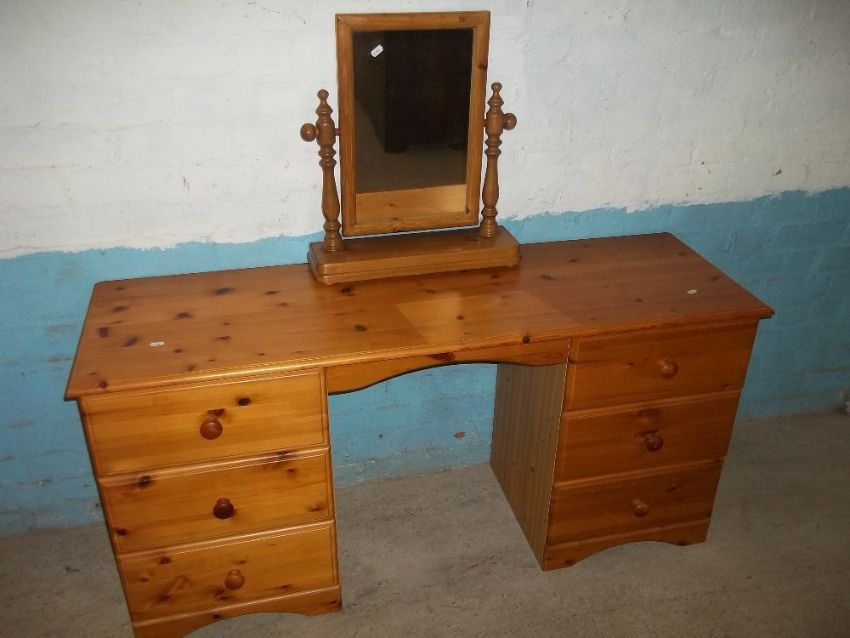 A SOLID PINE TWIN PEDESTAL DRESSING TABLE AND ADDITIONAL SWING MIRROR