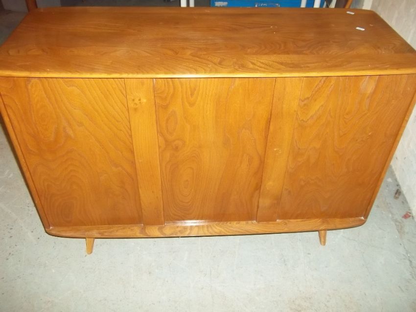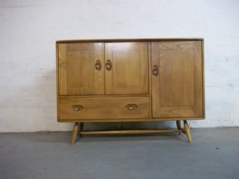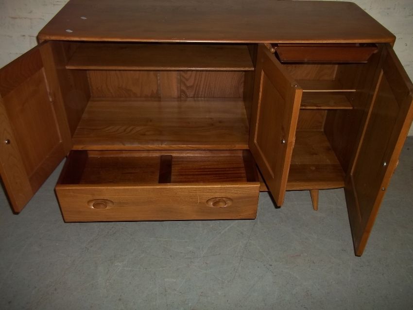 AN ERCOL STYLE SIDEBOARD, H 81 cm, L 113 cm, W 47 cm