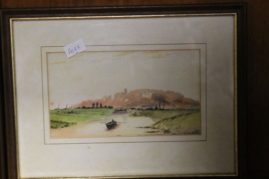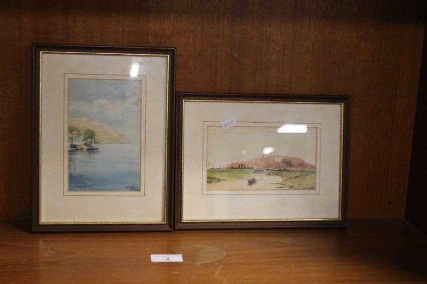 TWO FRAMED WATERCOLOURS, ONE A SEASCAPE SIGNED W. TAYLOR, THE OTHER A RIVERSIDE SCENE, SIGNATURE INDISTINCT (2)