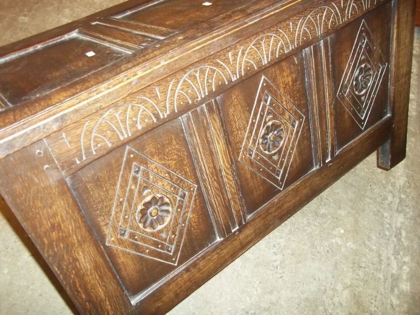 AN ANTIQUE OAK BLANKET CHEST / COFFER