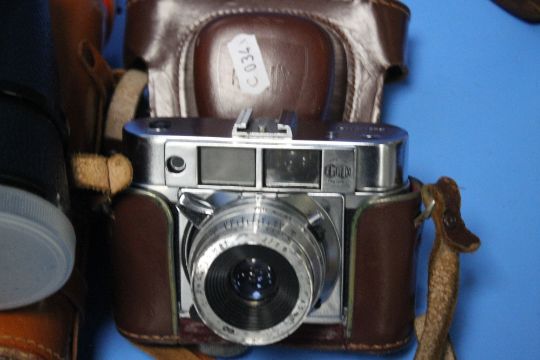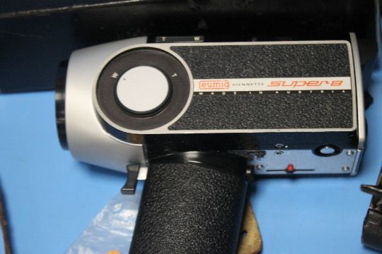 A PAIR OF BINOCULARS , A EUMIG SUPER-8 CAMERA, A KODAK FOLDING CAMERA ETC.