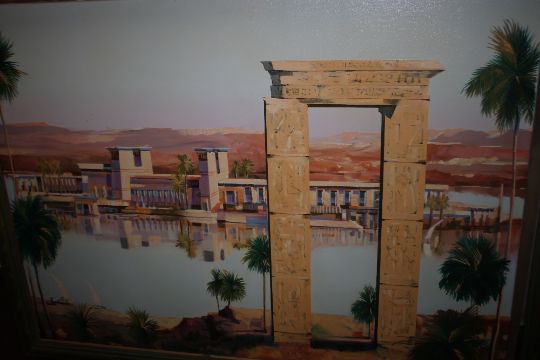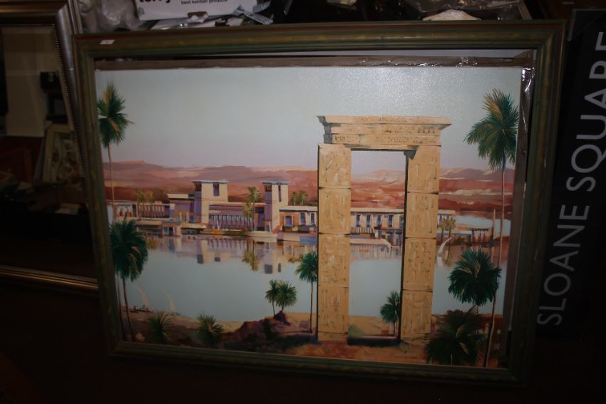 ANDREW HEWKIN - AN OIL ON CANVAS OF AN EASTERN SCENE, 135 x 105 cm