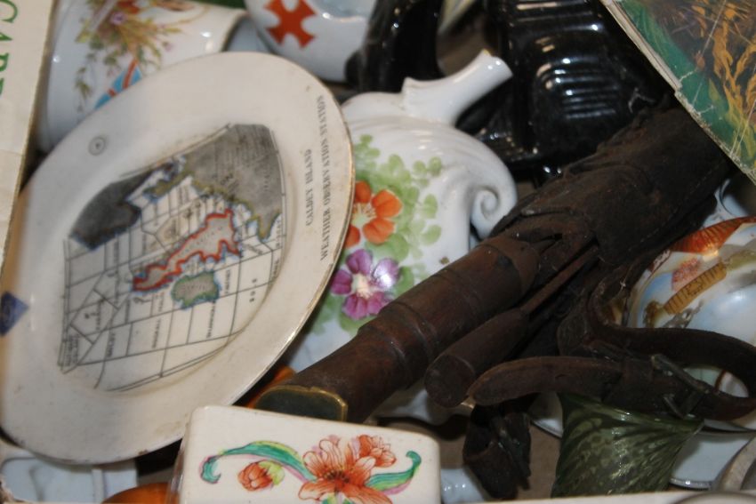A TRAY OF CERAMICS ETC. TO INCLUDE BOYS OWN MAGAZINES (TRAY NOT INCLUDED)