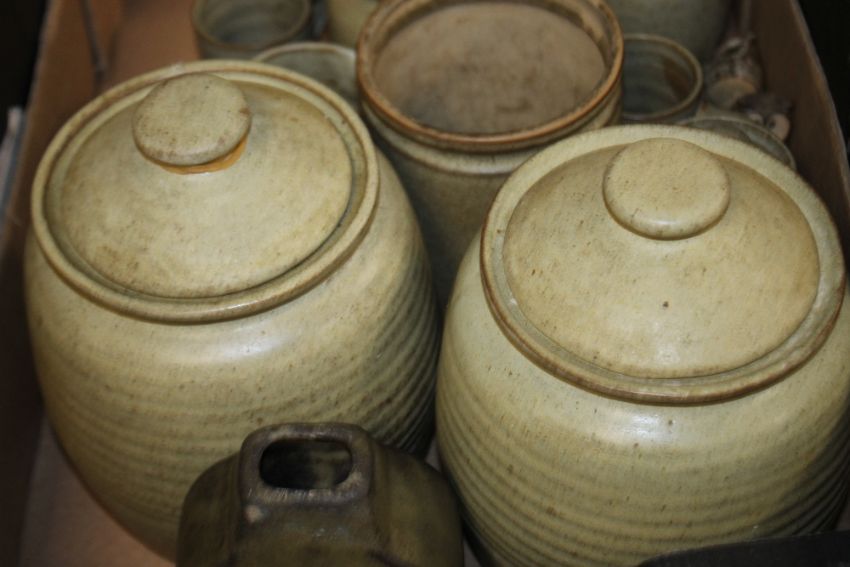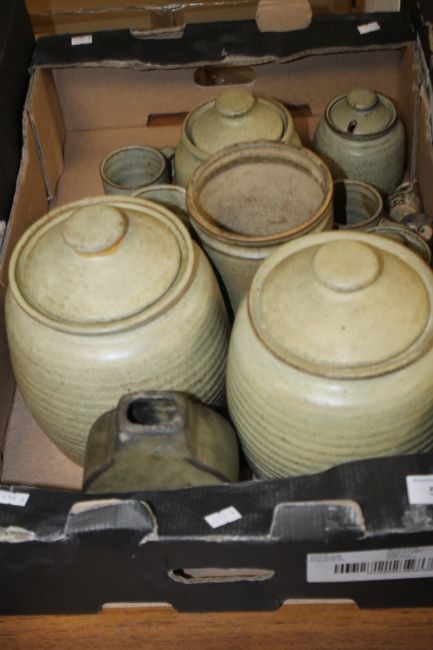 A TRAY OF CERAMIC POTS (TRAY NOT INCLUDED)