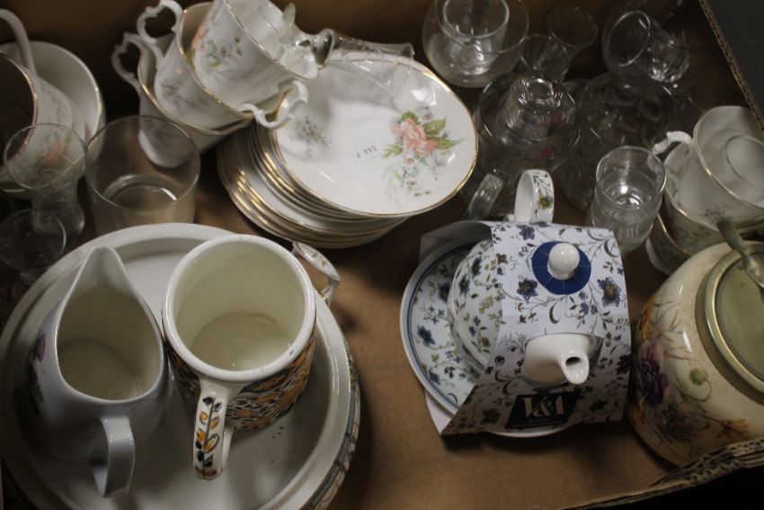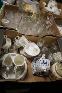 TWO TRAYS OF CERAMICS AND GLASSWARE (TRAYS NOT INCLUDED)