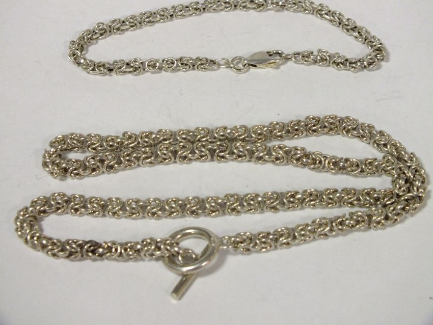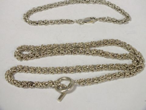 A STERLING SILVER NECKLACE AND BRACELET, APPROX TOTAL WEIGHT 34.5G