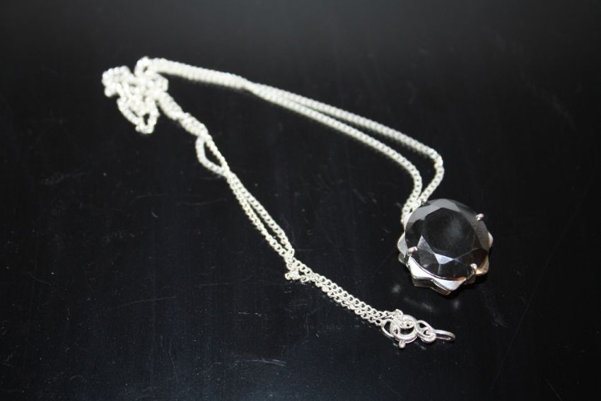 A MODERN STERLING SILVER AND BLACK DIAMOND STYLE PENDANT ON CHAIN