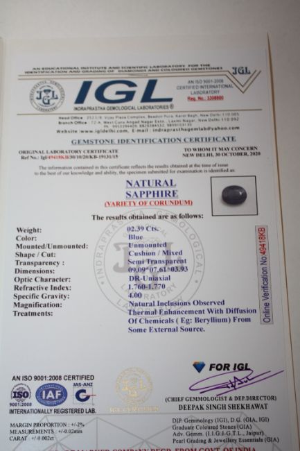 AN IGL CERTIFIED 2.39CT SAPPHIRE