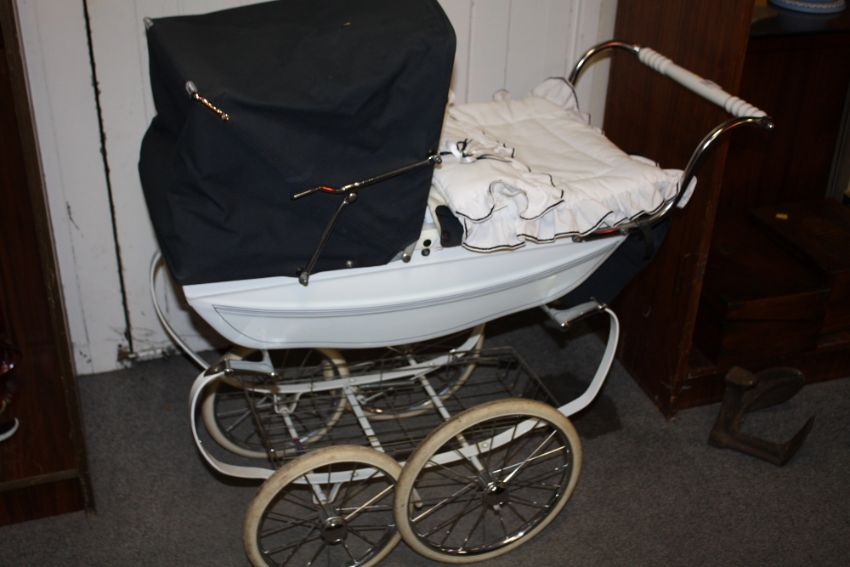 A SILVERCROSS DOLLS PRAM AND CONTENTS