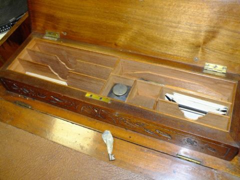 AN EDWARDIAN MAHOGANY CARVED DAVENPORT DESK W-55 CM