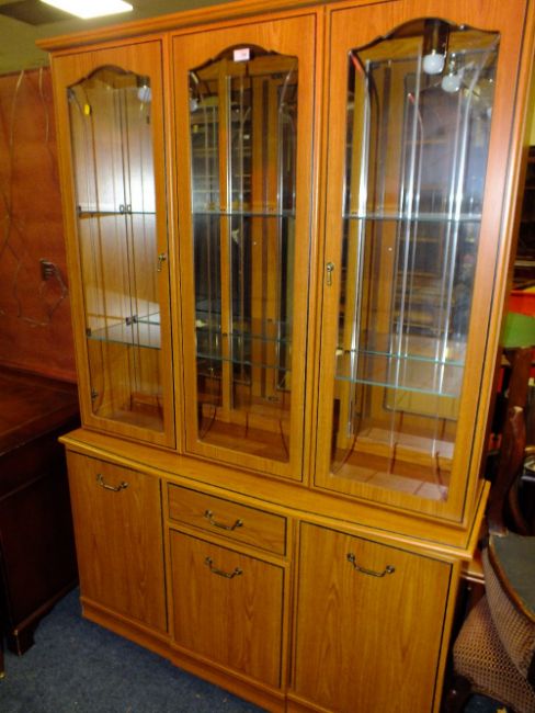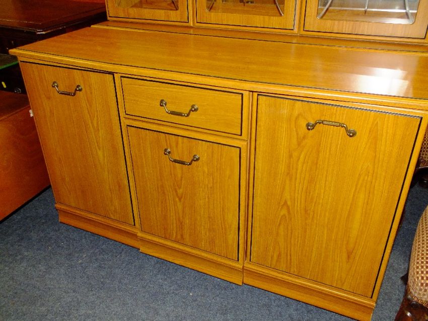A LARGE MODERN DISPLAY BOOKCASE H-190 CW-125 CM AND A MATCHING SIDEBOARD (2)