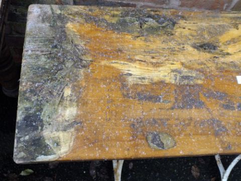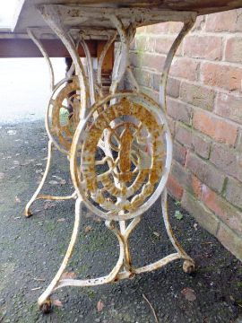 A SMALL TABLE WITH CAST METAL LEGS A/F