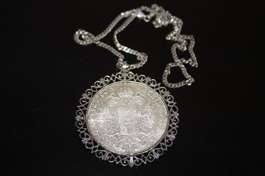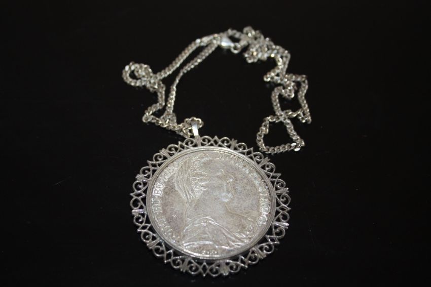 A COIN PENDANT ON SILVER CHAIN
