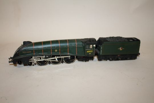 FOUR MODEL RAILWAY LOCOMOTIVES TO INCLUDE A HORNBY 60022 MALLARD, MAINLINE ETC.