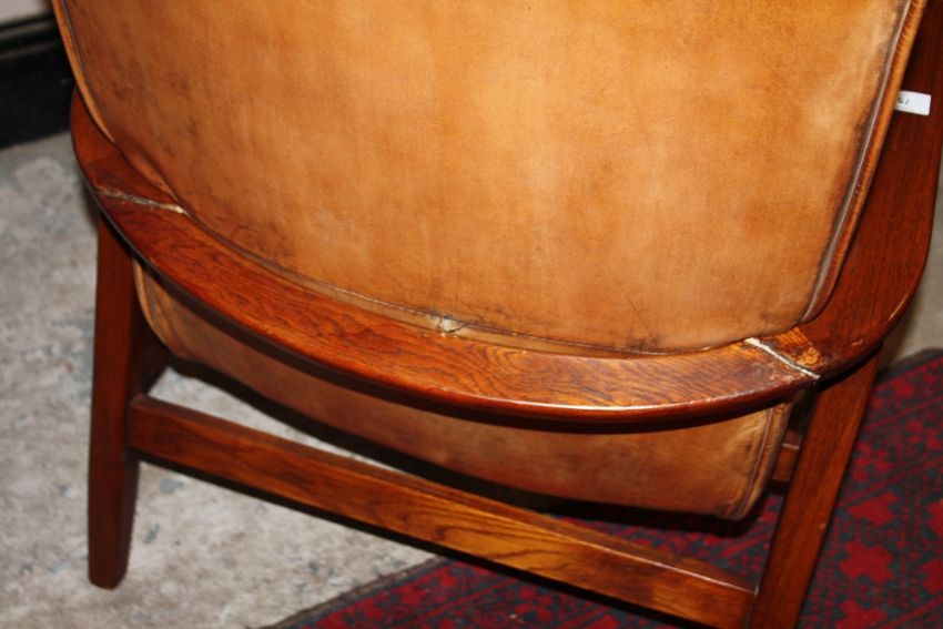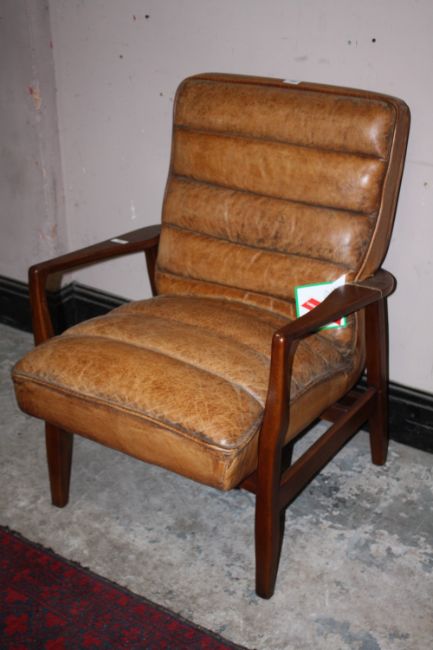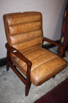 A RETRO STYLE TAN LEATHER ARMCHAIR