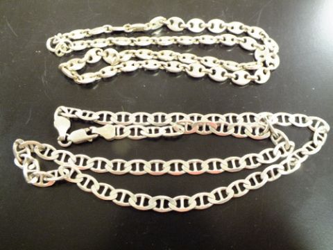 TWO STERLING SILVER CHAINS, APPROX TOTAL WEIGHT 32.7G
