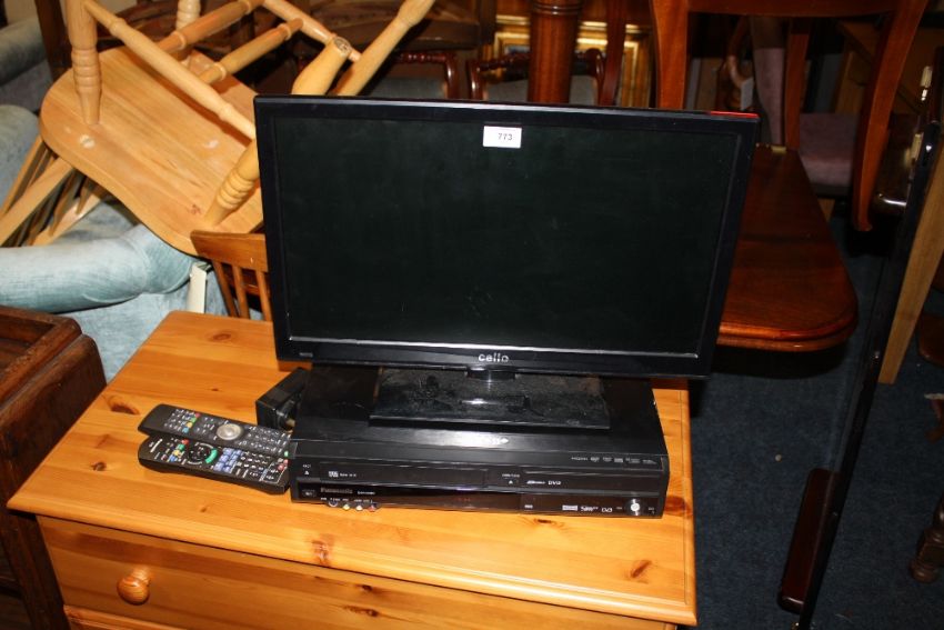 A SMALL 21" FLATSCREEN TV - REMOTE WITH VCR/DVD PLAYER (2)