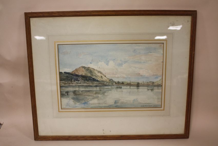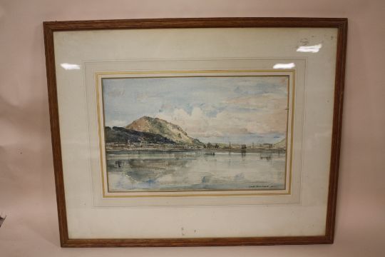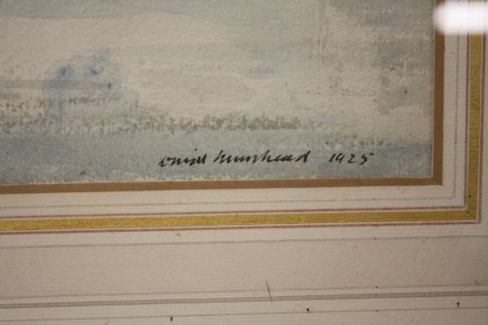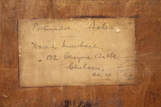 DAVID THOMAS MUIRHEAD (1867-1930). Coastal town` scene 'Portmadoc, N. Wales', see label verso, signed and dated 1925 lower right, watercolour, framed and glazed, 25 x 39 cm