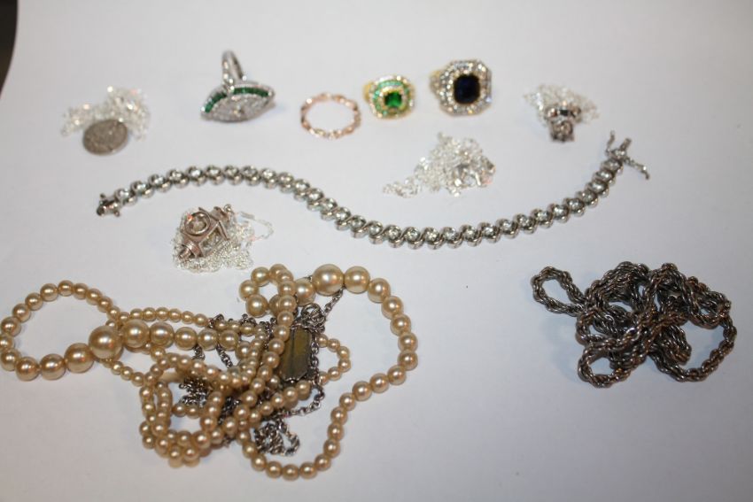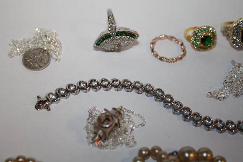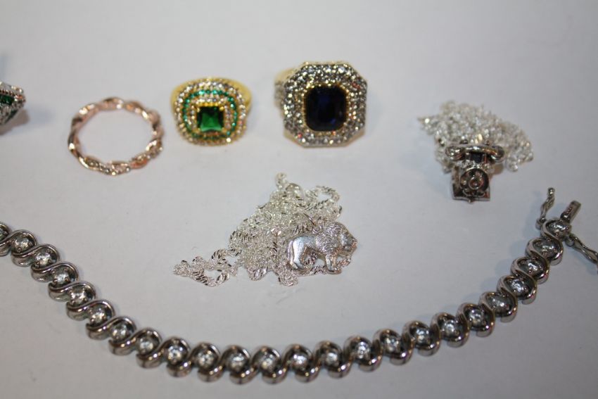 A COLLECTION OF STERLING SILVER AND OTHER JEWELLERY TO INCLUDE BRACELETS, NECKLACES ETC.