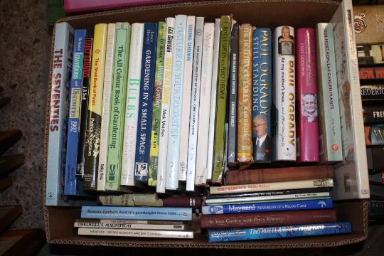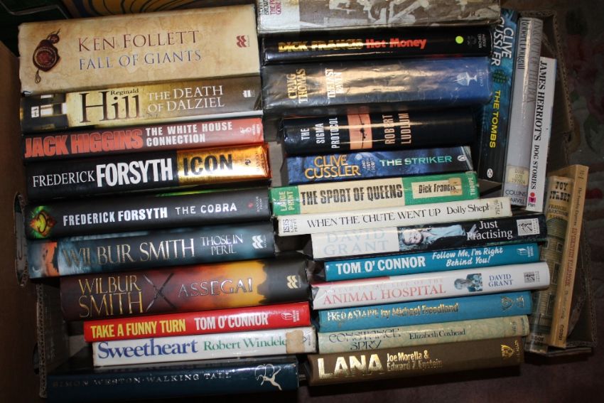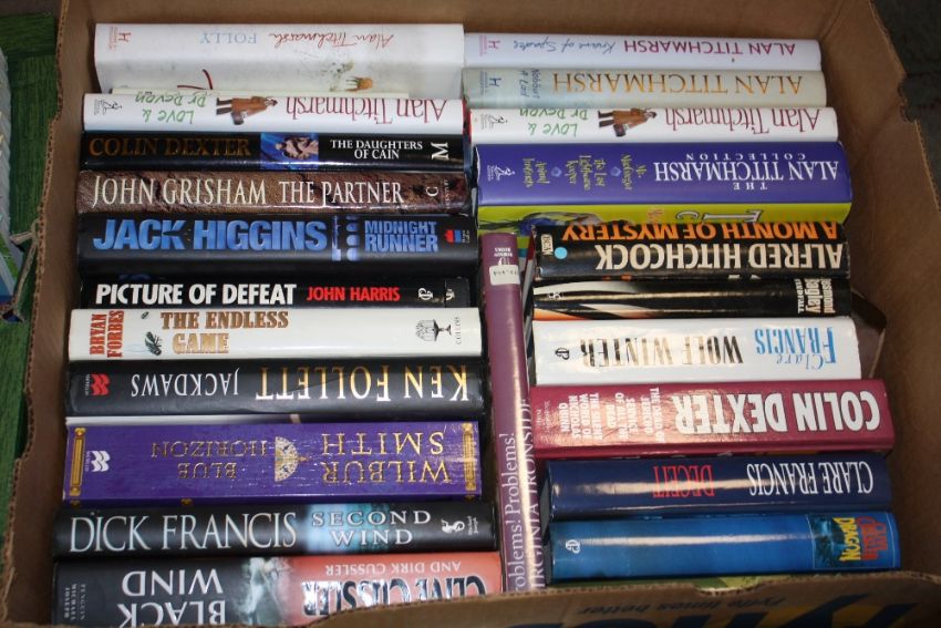 FOUR BOXES OF MOSTLY HARD BACK BOOKS
