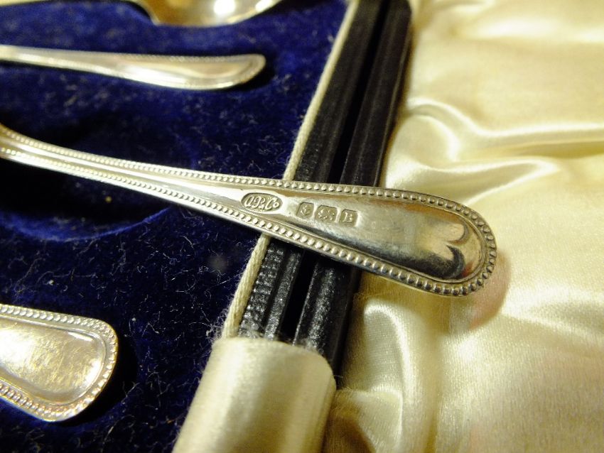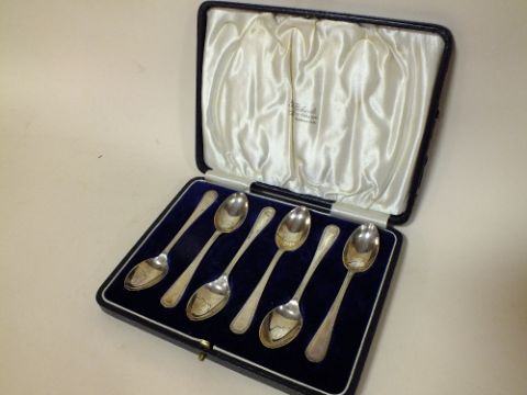 A CASED SET OF SIX HALLMARKED SILVER TEA SPOONS