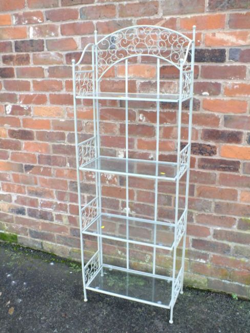 A MODERN METAL AND GLASS FOLDING BOOKCASE H-156 W-56 CM