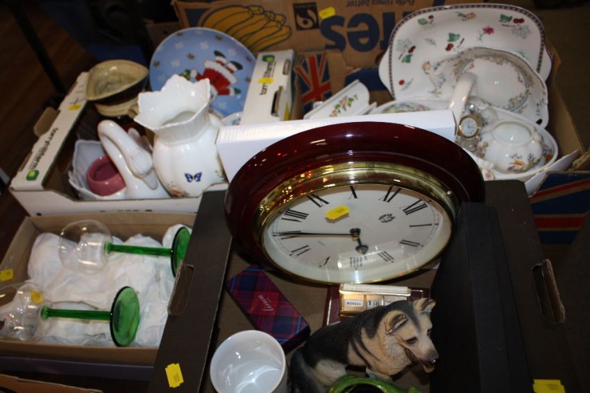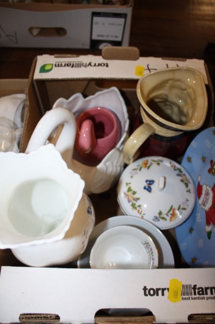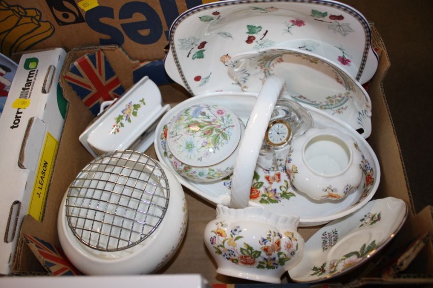 THREE BOXES OF CERAMICS AND GLASSWARE AND CERAMICS TO INCLUDE AYNSLEY