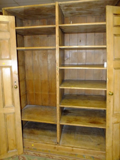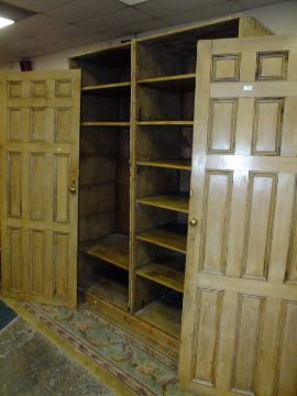 A LARGE ANTIQUE PINE TWO DOOR CUPBOARD H-201 W-146 CM