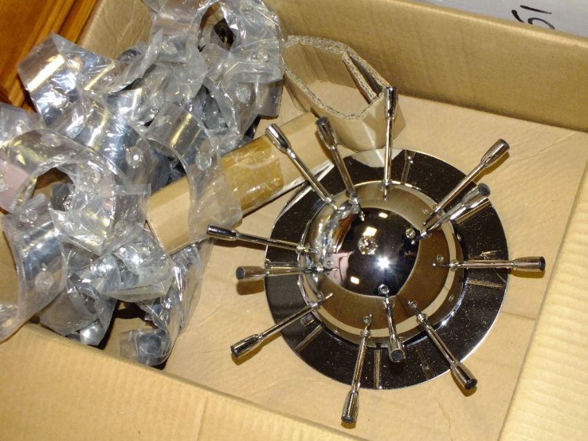 A BOXED MODERN 'SPUTNIK' TYPE LIGHT FITTING AND ANOTHER RIBBON TYPE LIGHT (2)