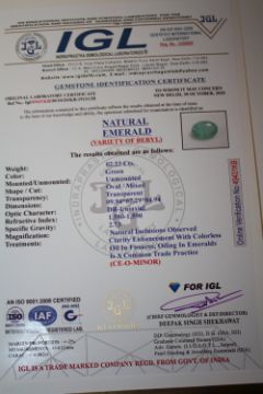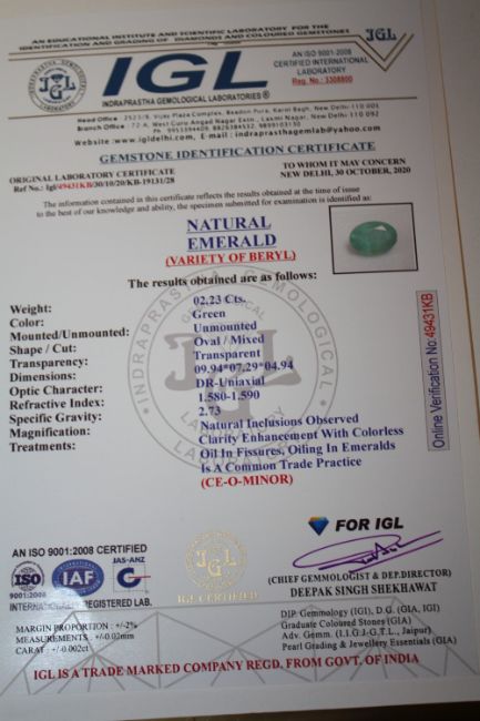AN IGL CERTIFIED OVAL CUT 2.4CT EMERALD
