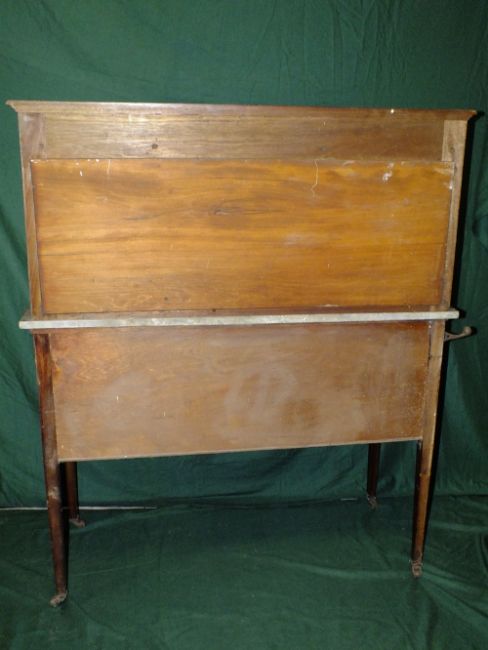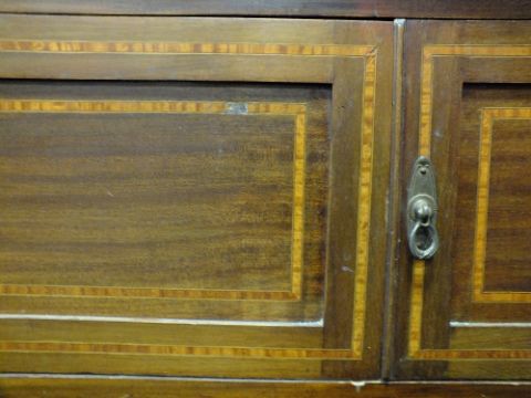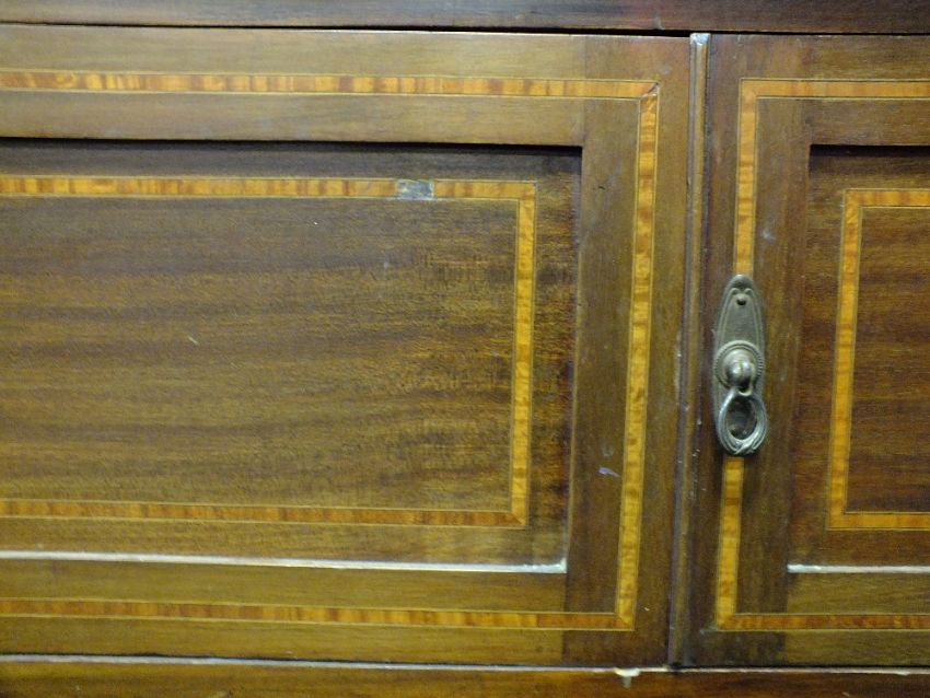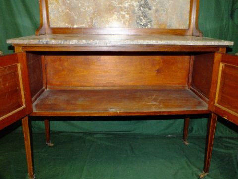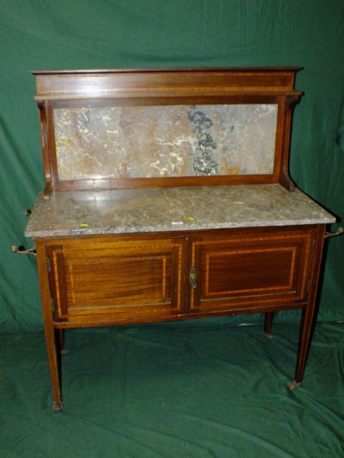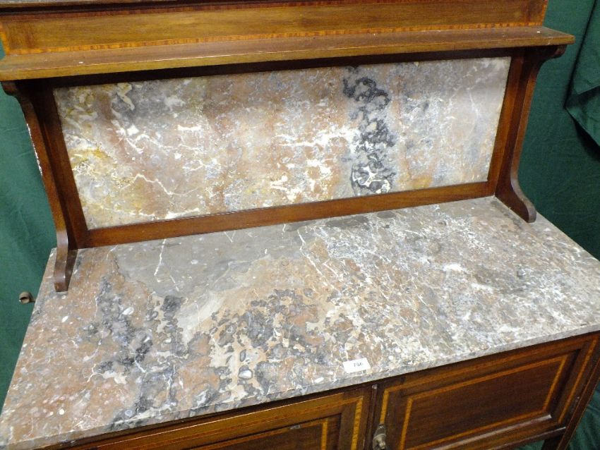 AN EDWARDIAN MAHOGANY INLAID MARBLE TOPPED WASHSTAND H-128 W-122 CM