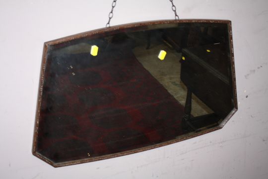 AN OAK TROLLEY AND WALNUT TABLE AND OAK MIRROR (3)