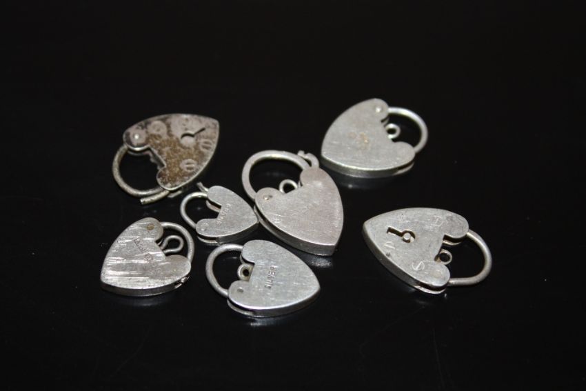 EIGHT SILVER HEART LOCK CHARM BRACELET FASTENERS