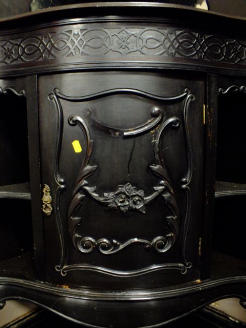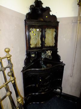 AN EDWARDIAN EBONISED CORNER PARLOR CABINET H-222 CM