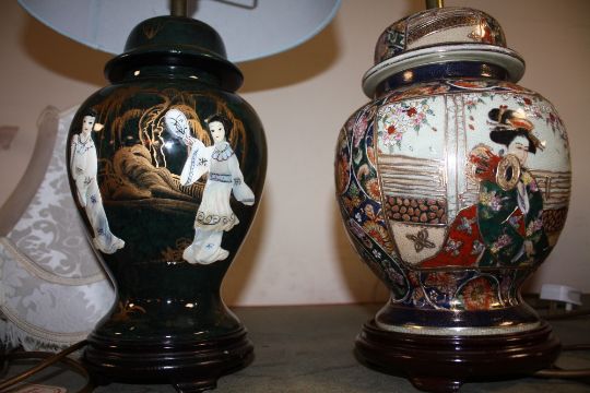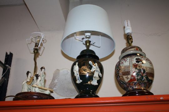 THREE MODERN ORIENTAL CERAMIC TABLE LAMPS
